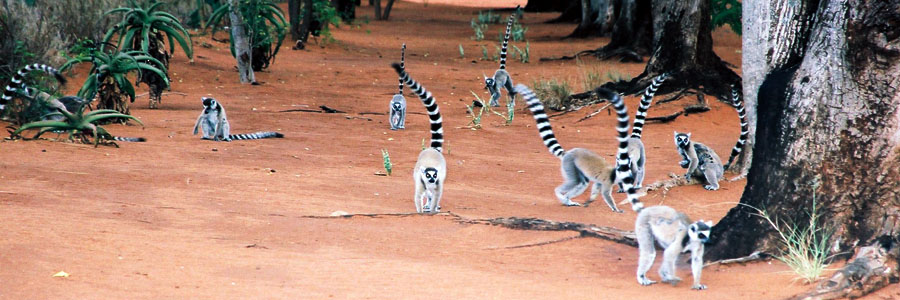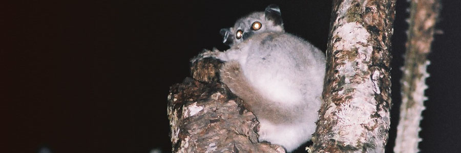 マダガスカル島には昆虫のほか、両生類や爬虫類などの小さな生き物しか生き残れませんでした。 キツネザルの祖先は、6500~6200万年前にアフリカ大陸から海を木の室に入って冬眠状態でネズミキツネザルが やってきたと考えられています。ネズミキツネザルは、食料が乏しくなると体温を下げ、眠り続けるという、 冬眠に似た習性を持っているおかげで、何も食べないで、400kmのモザンビーク海峡を渡ってきたと考えられます。 このネズミキツネザルから、今日100種類のキツネザルの仲間に分化しました。マダガスカル島は誕生以来乾燥した 気候でしたが、インド亜大陸が北上しユーラシア大陸と衝突して形成されたヒマラヤ山脈が、マダガスカル島に モンスーン気候もたらしました。マダガスカル島に雨の季節が生まれたのです。キツネザルは自然の変化に上手に 適応しながら進化し続けて、100種類もの仲間を作ってきました。 マダガスカル島に人間が入って2000年、人間は急激に自然を破壊し続けてきました。マダガスカル島の原生林は 90%消滅したと考えられています。今日キツネザルたちも多くが絶滅の危険にさらされています。人間によって すでに滅びてしまったキツネザルの仲間として、ゴリラ程の大きさのキツネザルやナマケモノキツネザルを はじめ16種類の大型のキツネザルが知られています。 |